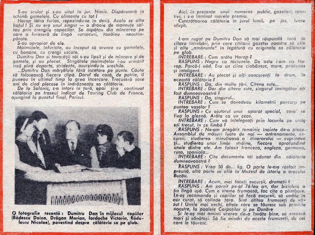 Dumitru Dan Ocolul Pământului în opinci ![]() Data și locul nașterii 14 Iulie 1889, Buhuşi Data și locul morții 4 Decembrie 1979, Buzău Educație • A studiat geografia la Universitatea Sorbona, Paris, Franţa Activitate • 1908 – student la Facultatea de Geografie a Universităţii Sorbona Povești care ne merg la suflet • În călătoria sa, Dumitru Dan a umblat pe 5 continente, a străbătut 3 oceane, a parcurs trasee în 76 de ţări şi peste 1.500 de oraşe. A rupt 497 perechi de opinci şi 28 de costume naţionale Autori